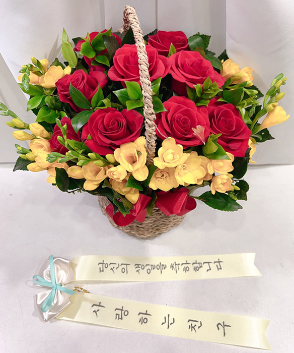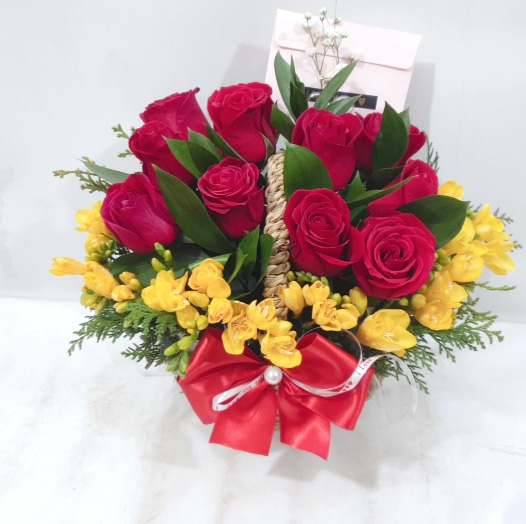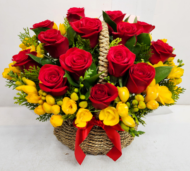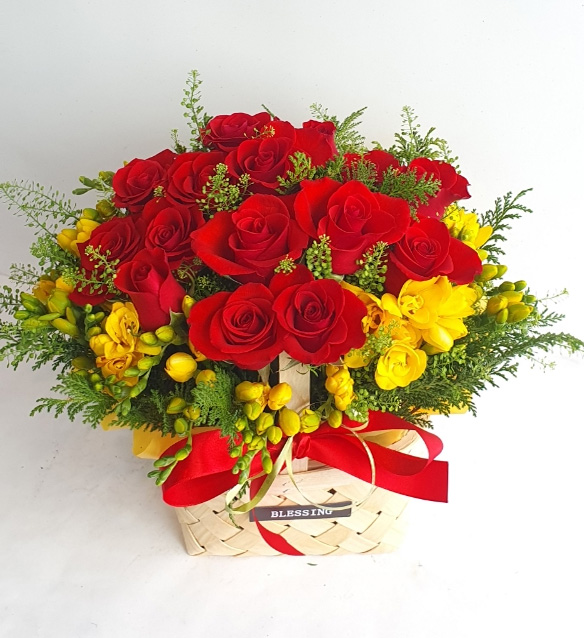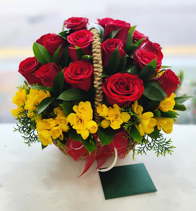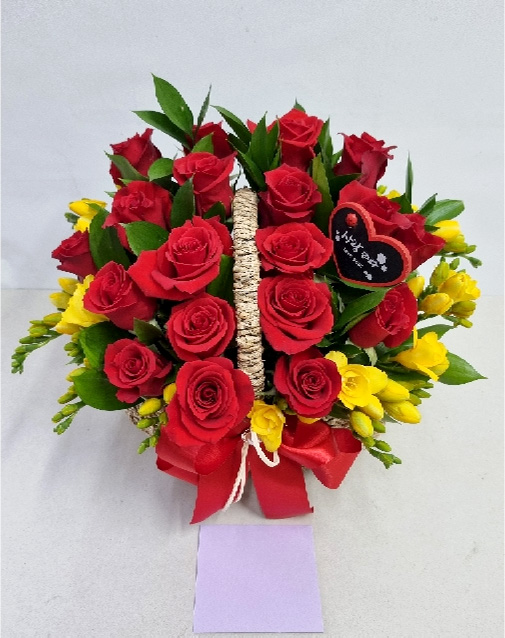 장미&프리지아 꽃바구니