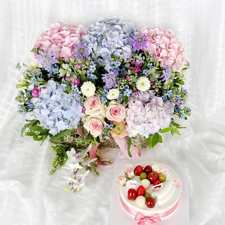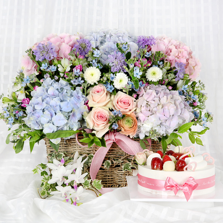 수국바구니+케익