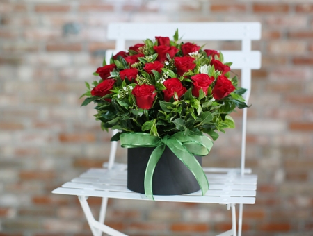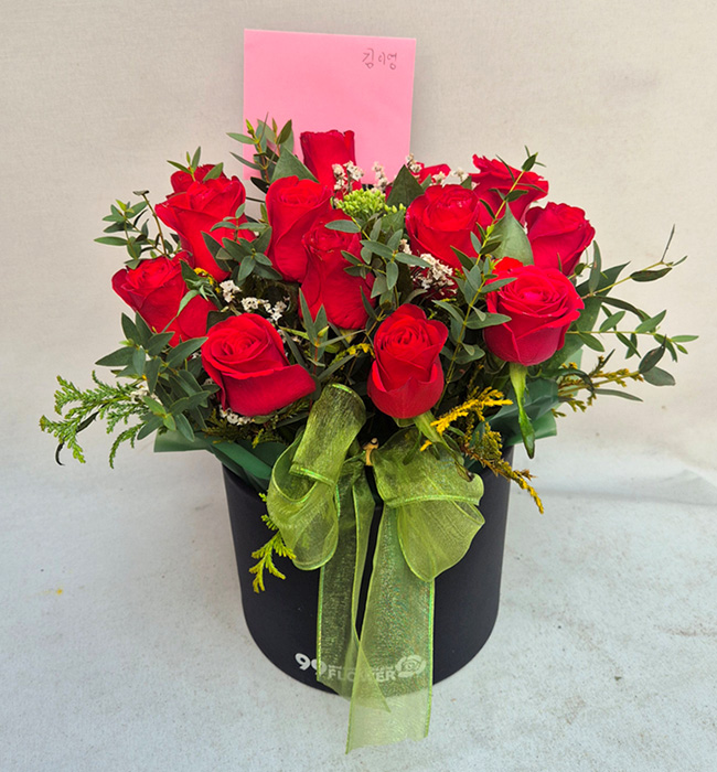 장미, 계절꽃, 그린계절 소재, 상자, 리본 또는 카드.