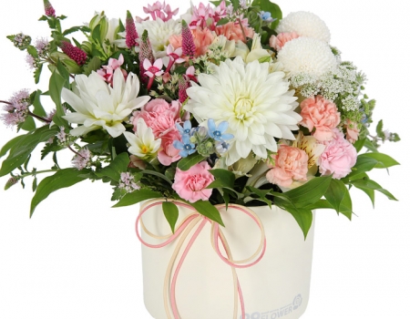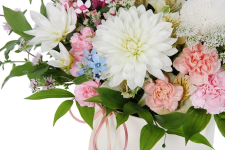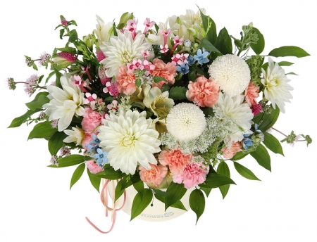혼합계절꽃, 그린계절 소재, 상자, 리본 또는 카드.