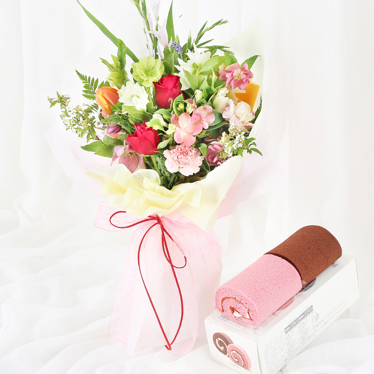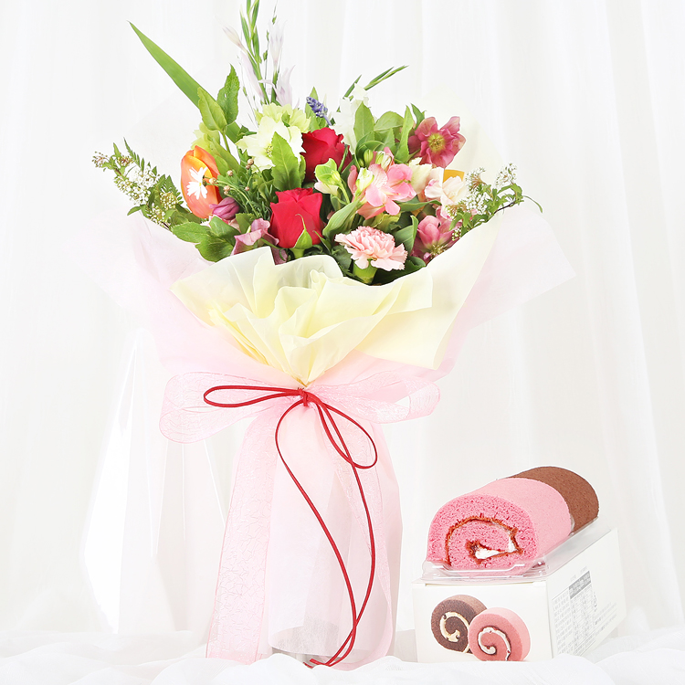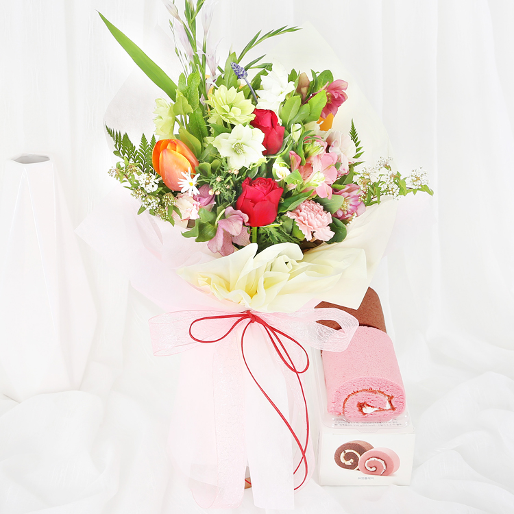 ★ 꽃다발의 모양과 색상, 꽃소재는 배송지역에 따라 차이가 있을 수 있습니다. ★ 본 상품은 롤케익 포함 상품이며, 케익의 종류는 랜덤으로 배송됩니다.