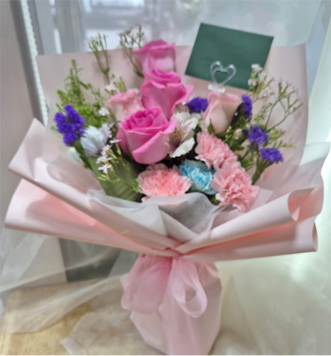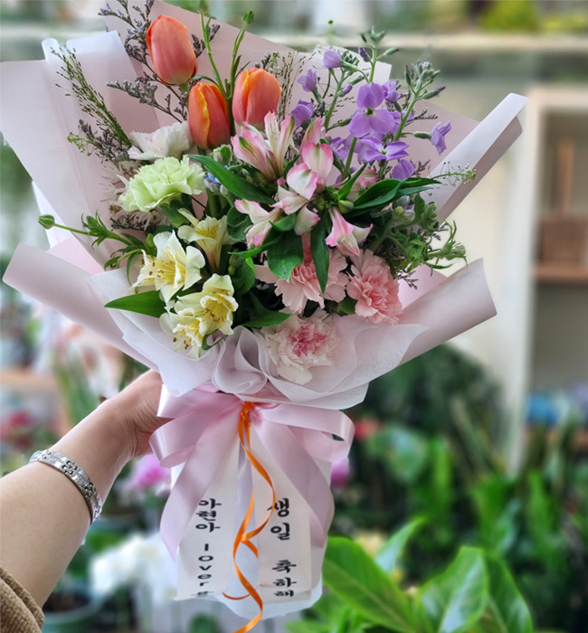 사진으로는 실물로 봤을 때의 느낌이 다 담기지 못하는게 아쉬울 정도예요. 상담원 분도 친절하셨고, 배송도 빨라서 너무 좋았습니다. 꽃 자체의 디자인도 너무 조화롭게 예뻤고, 생일날 받은 꽃다발이라 더 아름답게 느껴진 것 같습니다. 예쁜 꽃 감사합니다:)