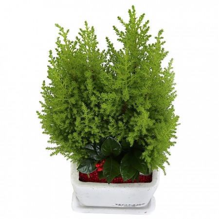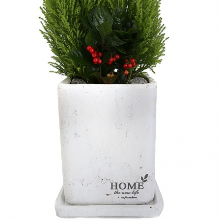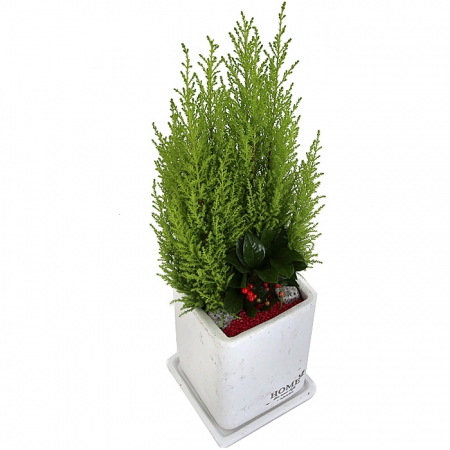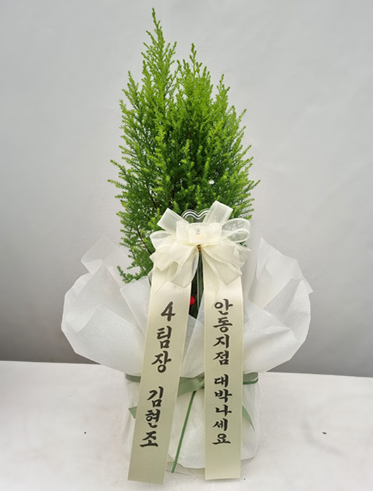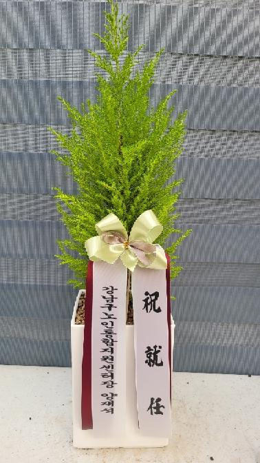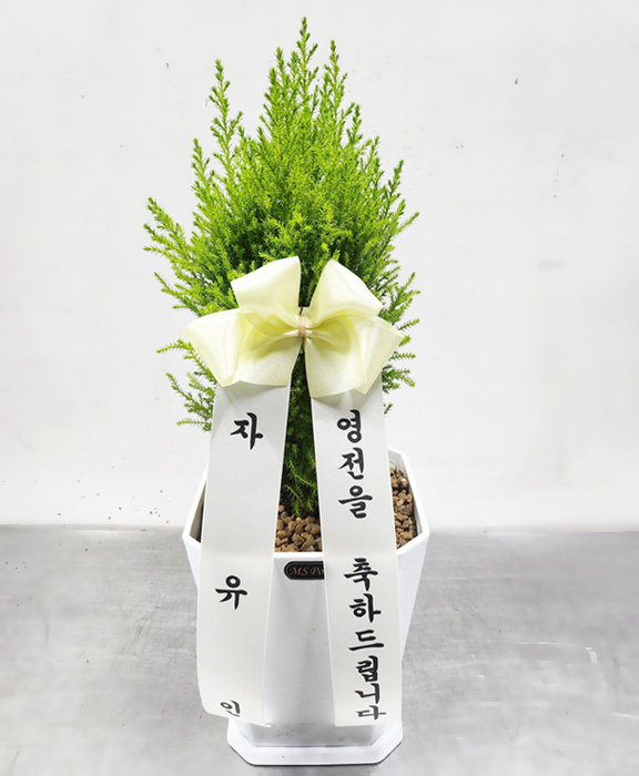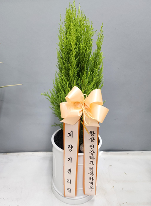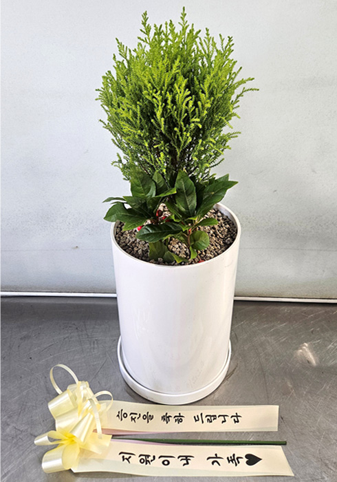 율마, 계절 초화 소품, 관엽식물 전용화분, 축하 메세지 리본 또는 카드.