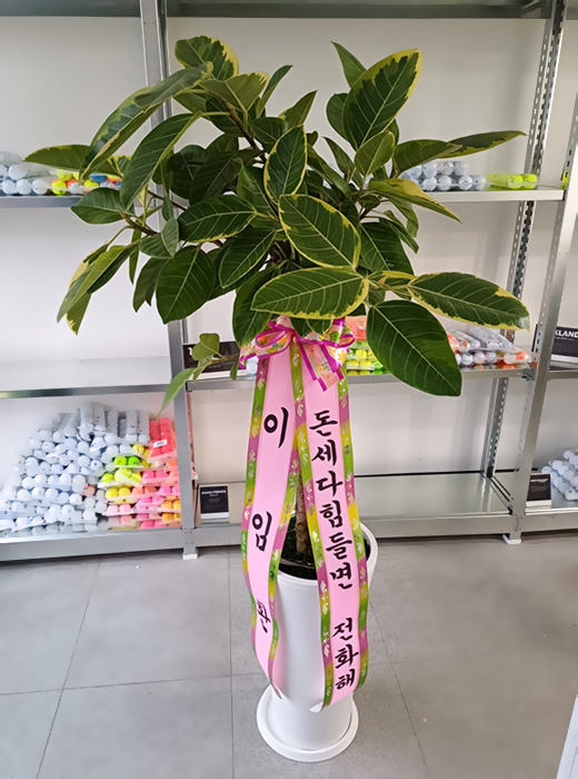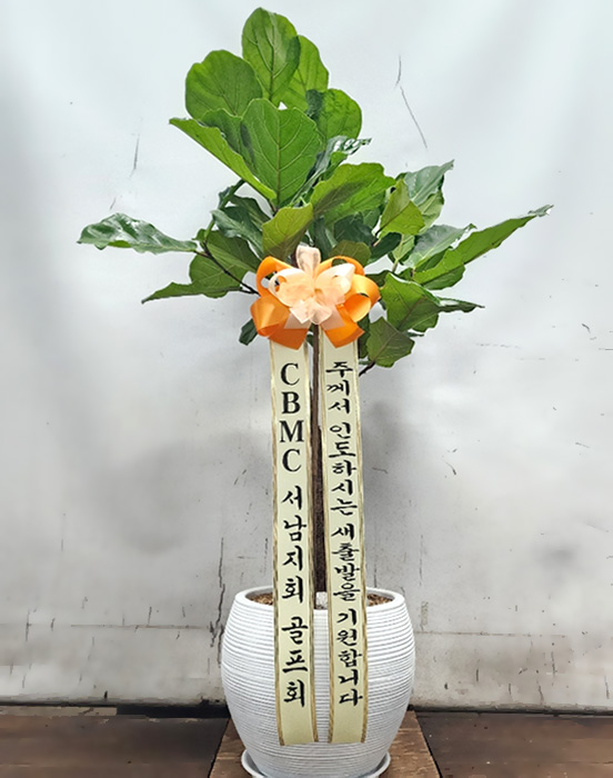 떡갈고무마루, 계절초화, 축하 메세지 리본 또는 카드.