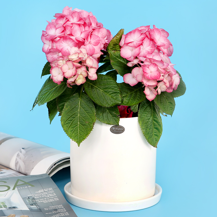 화사한 핑크 수국화분