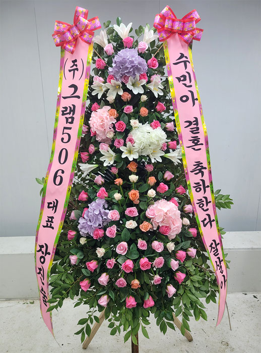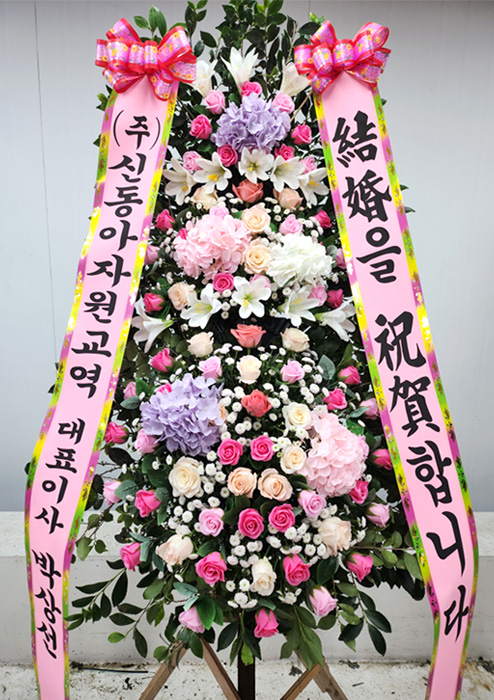 수국 축하화환 3단
