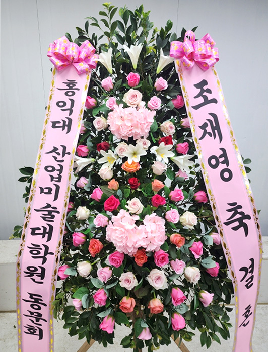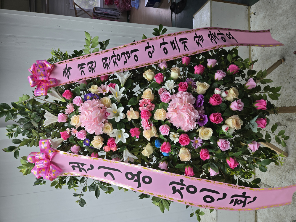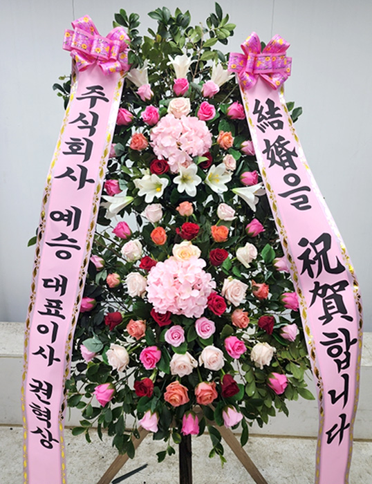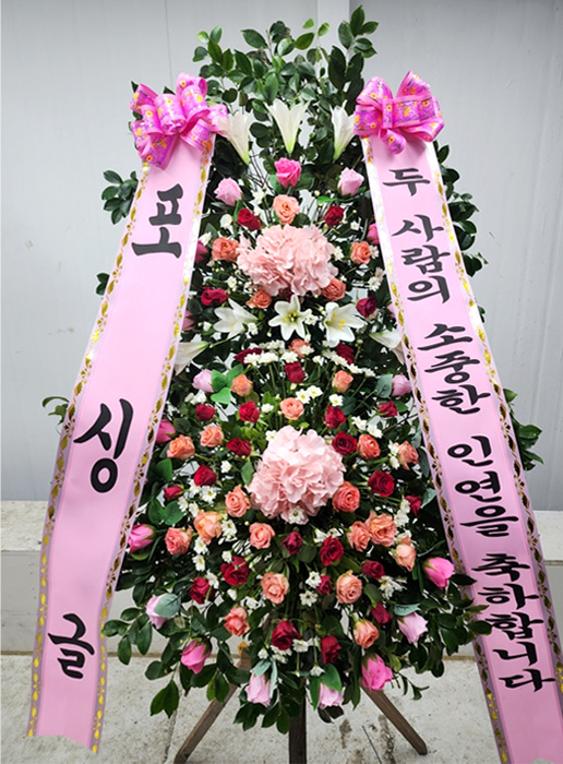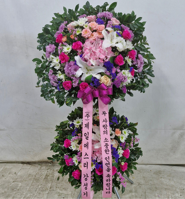 핑크 2단 수국화환