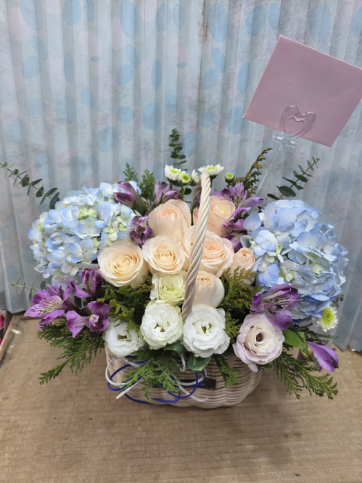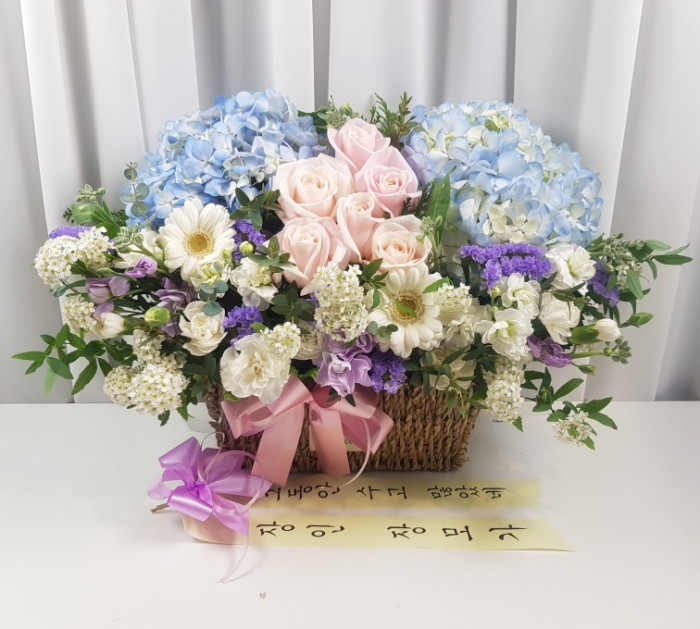 수국 장미 바구니