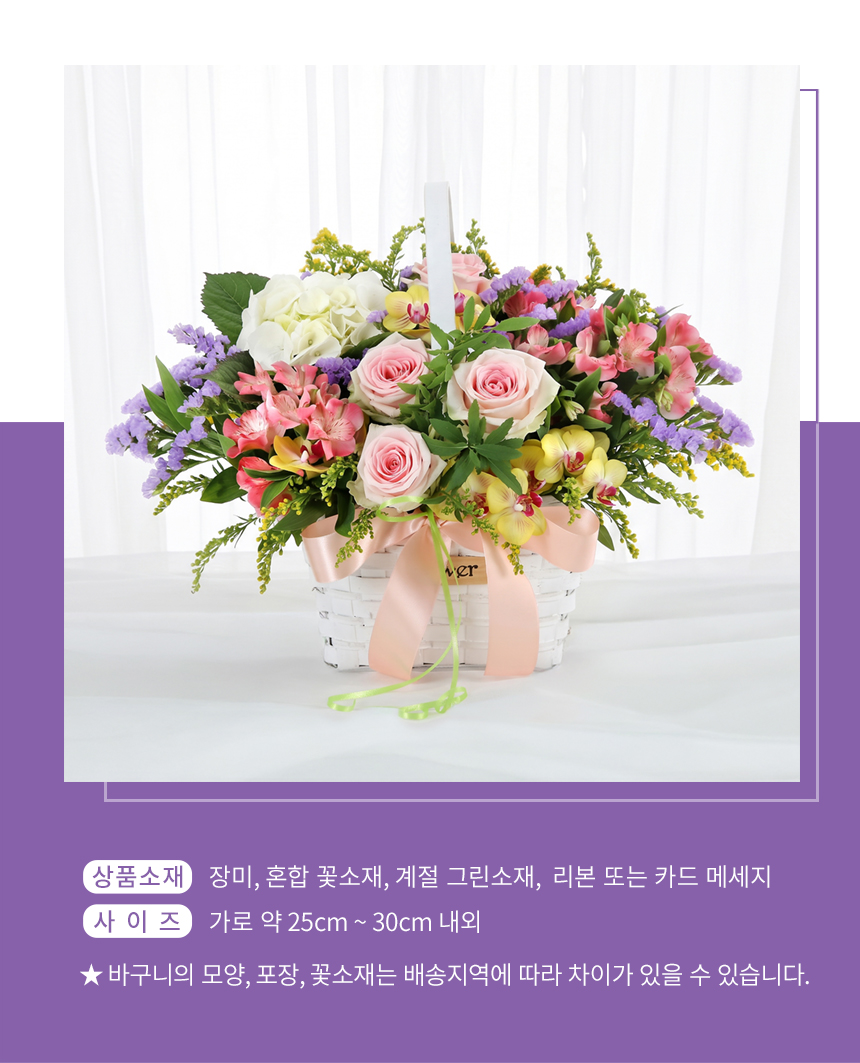 ★바구니의 모양, 색상, 포장, 꽃소재는 배송지역에 따라 차이가 있을 수 있습니다.