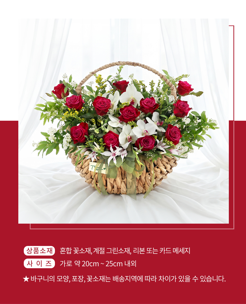 ★바구니의 모양, 색상, 포장, 꽃소재는 배송지역에 따라 차이가 있을 수 있습니다.
