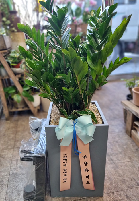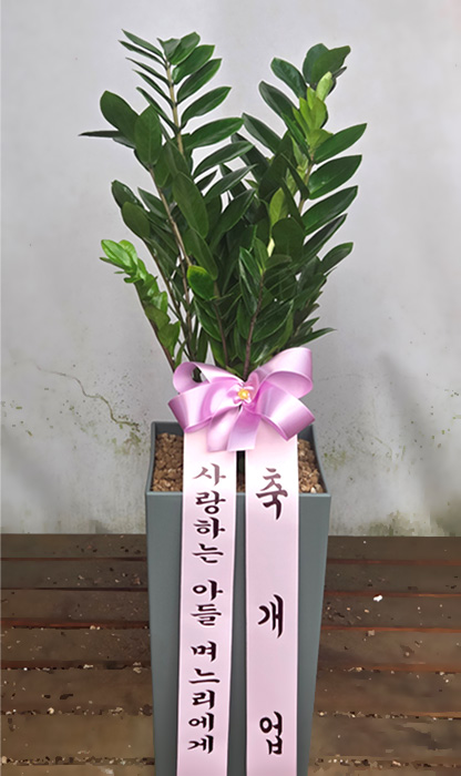 금전수(돈나무), 계절 초화 소품, 관엽식물 전용화분, 축하 메세지 리본 또는 카드.